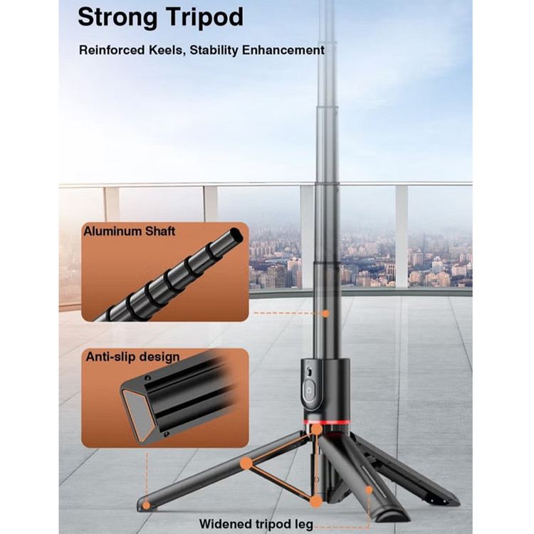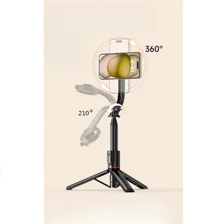 جنس آلومینیوم و ABS | چرخش 360 درجه | باتری شاتر قابل تعویض و از نوع CR1632 | پایه مقاوم و سنگین | قابلیت تنظیم طول تا 1045 میلیمتر | حالت جمع شده تنها 210 میلیمتر و قابل حمل