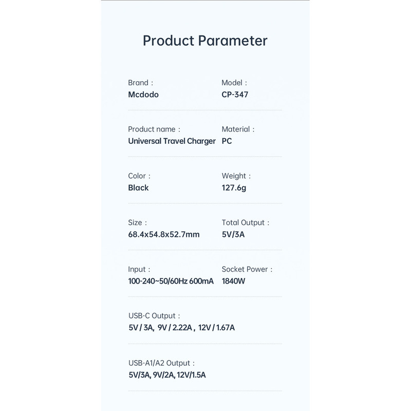 تیم تکنیک تل با افتخار در تلاش است که تجربهای متفاوت و لوکس از دنیای فناوری را به شما عزیزان هدیه دهد. کیفیت، خلاقیت و نوآوری سه رکن اصلی ما هستند، و هدف ما این است که بهترین محصولات روز دنیا را با بهترین خدمات در اختیار شما قرار دهیم تا هر لحظه از استفادهی وسایل هوشمندتان لذت ببرید. اگر به دنبال یک همراه ایدهآل برای سفرهای بینالمللی خود هستید، آداپتور مک دودو مدل CP-347 دقیقاً همان چیزی است که نیاز دارید. این آداپتور با پشتیبانی از سوکتهای EU، UK، US و AU، در بیش از 200 کشور قابل استفاده است و با خروجی 20 وات، امکان شارژ سریع را از طریق دو پورت USB و یک پورت USB-C فراهم میکند. این محصول با فناوری شارژ سریع PD و QC 3.0، به شما امکان شارژ سریع گوشیها، تبلتها و دیگر وسایل الکترونیکی را میدهد. طراحی جمعوجور و سبک آن به همراه ساختار مقاوم از مواد PC ضد حریق، امنیت و دوام را تضمین میکند. همچنین، این آداپتور به طور هوشمند از دستگاههای شما در برابر ولتاژ بالا، جریان بیش از حد و اتصال کوتاه محافظت میکند، تا در هر شرایطی خیالتان از بابت سلامت دستگاهها راحت باشد. آداپتور مک دودو با ویژگیهایی همچون سازگاری گسترده، شارژ سریع و محافظتهای ایمنی، ابزاری ضروری برای هر مسافر حرفهای است. اگر به دنبال محصولی هستید که در کنار قابلیتهای فنی پیشرفته، طراحی زیبا و کاربردی هم داشته باشد، این آداپتور گزینهای ایدهآل برای شماست.