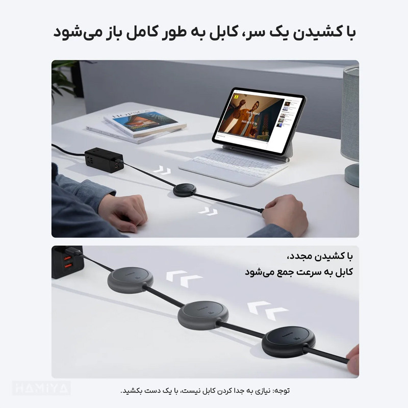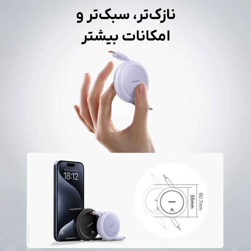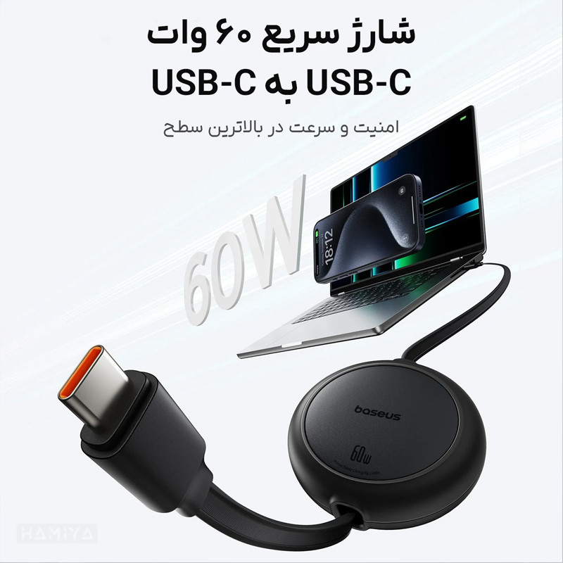 قابلیت جمع شوندگی | توان 60 وات | طول یک متر | دارای کانکتور تایپ سی | قابلیت انتقال داده | سبک، زیبا و قابل حمل