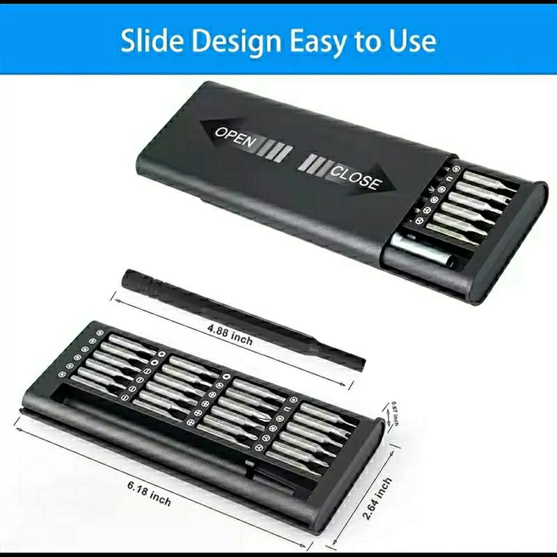 جعبه 25 پارچه سر پیچ گوشتی ساعتی دسته 360 درجه