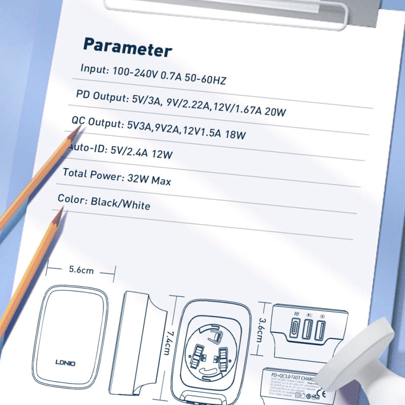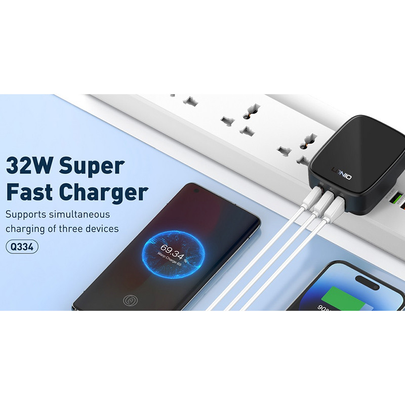 در دنیای امروز که تکنولوژی نقش مهمی در زندگی انسان ایفا می کند، داشتن لوازم جانبی مناسب و دستگاه های الکترونیک، یک نیاز اساسی است. برند الدینیو که همواره لوازم جانبی با کیفیت و قابل اعتماد برای گوشی های هوشمند، تبلت ها، لپ تاپ ها و سایر دستگاه های الکترونیکی تولید می کند، به تازگی محصولی تحت عنوان شارژر دیواری 32 وات الدینیو مدل Q334 را طراحی، تولید و به بازار عرضه کرده است. استفاده از شارژر با کیفیت خیال شما را در رابطه با سلامت وسایلتان راحت خواهد کرد. بدنه شارژر دیواری الدینیو از ABS ساخته شده و با توجه به ابعاد کوچک و وزن کمی که دارد به راحتی قابل حمل است. این شارژر دیواری دارای 1 پورت Type-c (PD) و 2 درگاه USB است و که یکی از آن ها قابلیت (QC) دارد. توان خروجی کلی این شارژر برابر با 32W وات است و توان هر پورت به تفکیک عبارتند از درگاه Type-c مجهز به فناوری PD با حداکثر توان 20 وات، درگاه USB نارنجی رنگ مجهز به فناوری QC3.0 با حداکثر توان 18 وات و درگاه USB سبز رنگ مجهز به فناوری Auto-ID با حداکثر توان 12 وات است. همچنین استفاده همزمان از درگاه Type-c و درگاه Auto-ID USB در مجموع حداکثر توان 18 وات دارد و به طور کلی اگر از درگاههای این شارژر به طور همزمان استفاده کنید، مجموع توان خروجی 32 وات خواهد بود.