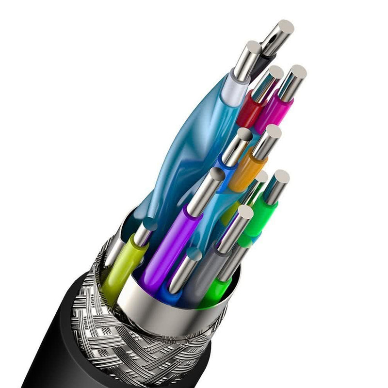 این کابل برای انتقال سیگنال های تصویری و صوتی بدون افت کیفیت استفاده می شود. با استفاده از تنها یک کابل برای انتقال صدا و تصویر در یک زمان، تعداد کابل های اتصال دو دستگاه چند رسانه ای مختلف کاهش می یابد. با کمک آن می توانید جلوه های سینمایی را در خانه خود ایجاد کنید.این کابل به شما امکان می دهد از لپ تاپ یا دستگاه دیگری اسکرین شات بگیرید و تصویر را به یک صفحه نمایش بزرگتر انتقال دهید. بالاترین کیفیت تصویر و صدا را ارائه می دهد. این نه تنها در خانه، بلکه در محل کار، در یک کنفرانس یا مدرسه مناسب است.نرخ تازهسازی 60 هرتز به شما این امکان را میدهد تا از فیلمهای خود با سرعت 60 فریم در ثانیه و زمان پاسخدهی سریعتر در بازیها، بهویژه در FPS، لذت کامل ببرید.