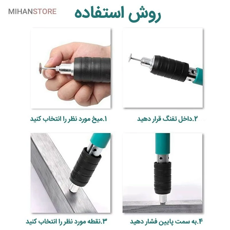 مناسب برای نصب میخهای حجیم، پروژههای ساختوساز، نجاری، تعمیرات صنعتی، اتصال قطعات فلزی به چوب یا پلاستیک