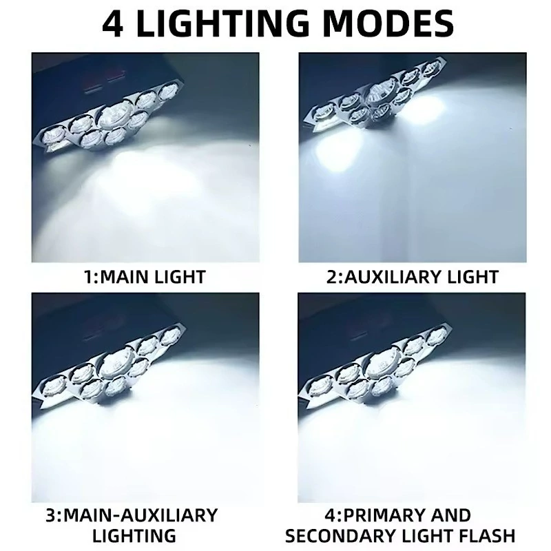 دارای چهار حالت نوردهی لامپ متمرکز روشن، 20 لامپ کناری روشن، حالت قوی 28 نوری، حالت چشمکزن اضطراری