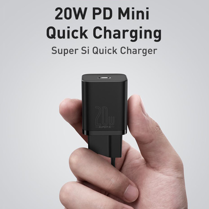 آداپتور شارژ سریع Baseus Super Si CCSUP-B01 محصولی دیگر از کمپانی بیسوس بوده و دارای 1 پورت USB Type C است که از پروتکل PD پشتیبانی میکند.تمام گوشش های اپل که بعد ار مدل Apple iPhone 8 عرضه شدهاند از قابلیت شارژ PD پشتیبانی میکنند. این قابلیت دارای قدرت شارژی 3 برابر سریعتر از شارژهای 5V/1A میباشد و قادر است در عرض 30 دقیقه 48 درصد شارژ باتری را تامین کند. خروجی تایپ سی این شارژر میتواند از شدت جریان 5V/3A پشتیبانی کند و دارای ورودی 100V-240V است و بازه گستردهای را پوشش میدهد.