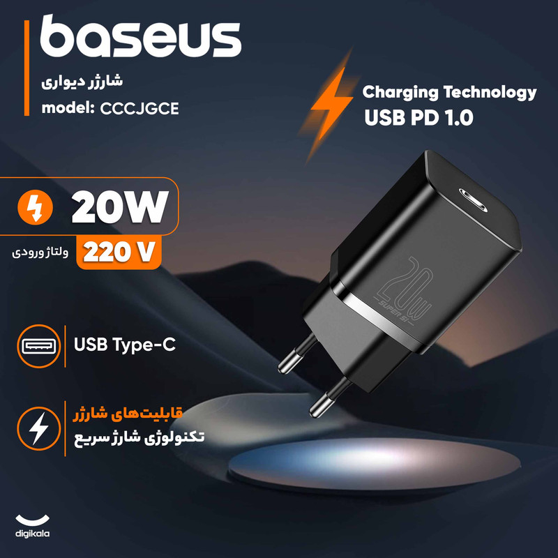 شارژر دیواری 20 وات بیسوس مدل CCCJGCE
