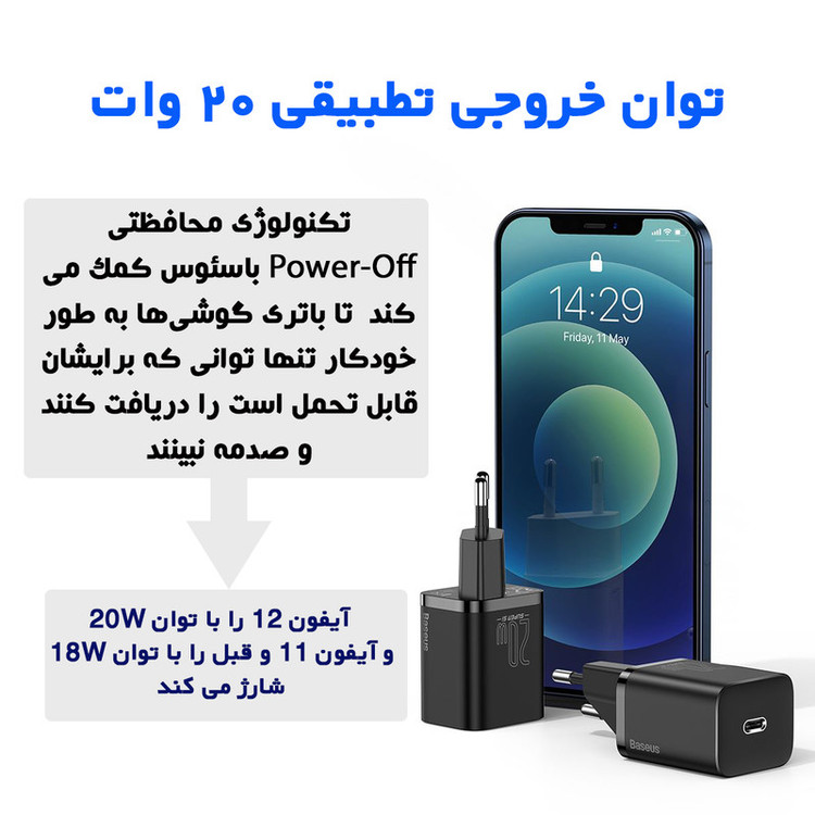 توان خروجی کلی آداپتور فست شارژ بیسوس CCSUP-B01 برابر با 20W میباشد که میتواند سری اپل آیفون 12 را با همین توان و سری آیفون 11 و قبل را با توان 18W شارژ کند. این تشخیص چگونگی کاهش توان به واسطه تکنولوژی محافظتی Power-Off بیسوس انجام میشود تا باتری گوشیها به طور خودکار تنها توانی که برایشان قابل تحمل است را دریافت کنند و صدمه نبینند.