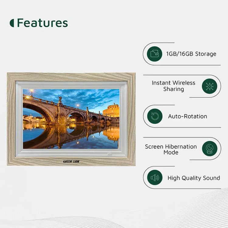 صفحه نمایش 10.1 اینچ و لمسی | پشتیبانی از کارت TF | اشتراک گذاری بی سیم از طریق wifi و frameo | پشتیبانی از فرمت های مختلف JPG | PNG | HEIC | MP4 | 3GP | MOV