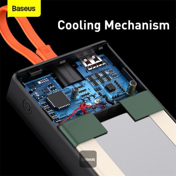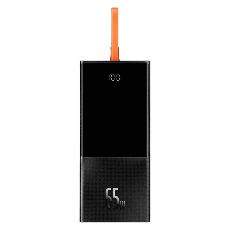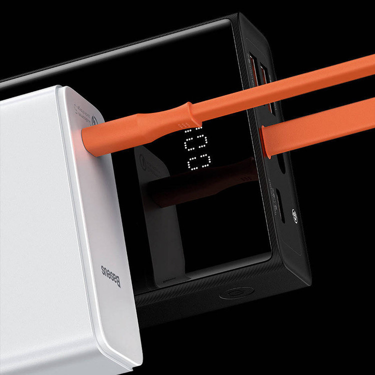 مشخصات فنی: یک کابل نارنجی رنگ به پاوربانک 20000 بیسوس Elf متصل است که از نوع Type-C میباشد. قابلیت مهم این کابل این است که علاوه بر شارژ کردن خود پاوربانک (ورودی)، میتواند گوشی شما را هم شارژ کند (خروجی). شارژپاوربانک با یک آداپتور مناسب تنها 90 دقیقه طول میکشد.
