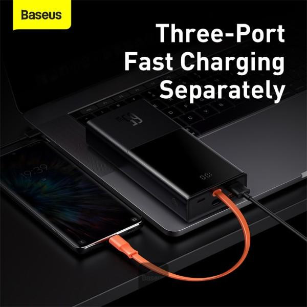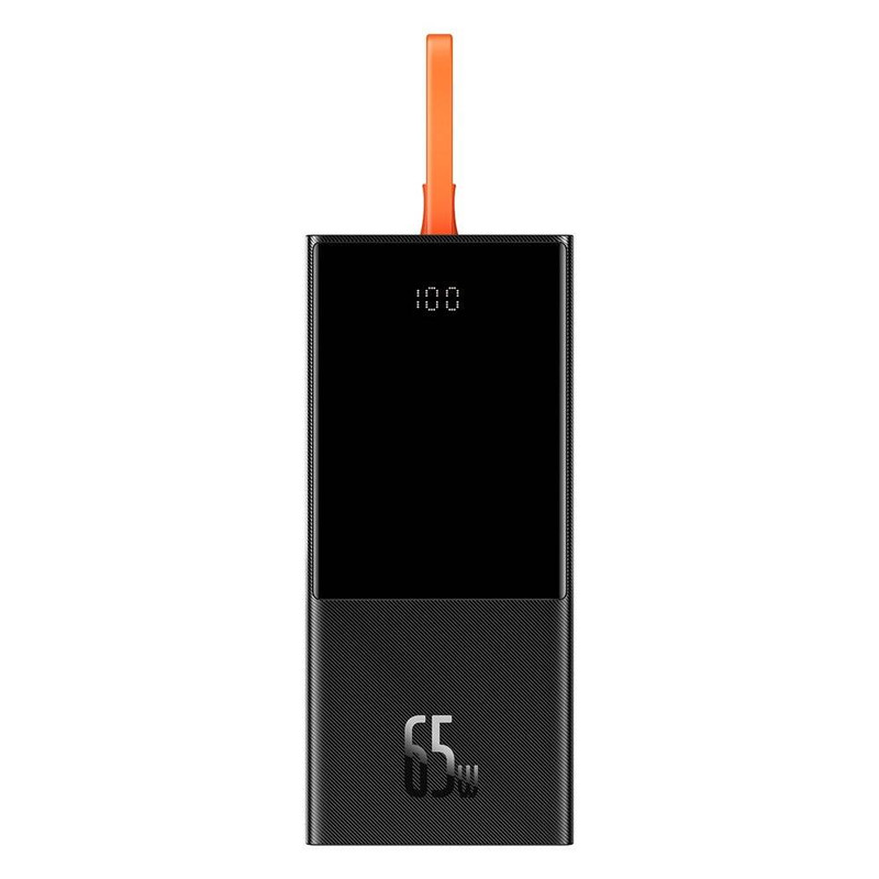 مشخصات فنی: یک کابل نارنجی رنگ به پاوربانک 20000 بیسوس Elf متصل است که از نوع Type-C میباشد. قابلیت مهم این کابل این است که علاوه بر شارژ کردن خود پاوربانک (ورودی)، میتواند گوشی شما را هم شارژ کند (خروجی). شارژپاوربانک با یک آداپتور مناسب تنها 90 دقیقه طول میکشد.