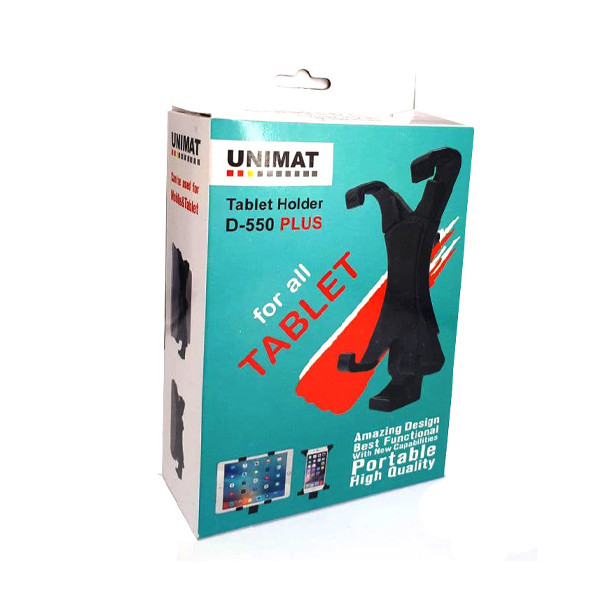 نگهدارنده تبلت و آیپد مدل D-550 Plus از برند محبوب یونیمات با جای پیچ 1.4 اینچ مناسب برای استفاده بر روی کلیه تجهیزات عکاسی و یا فیلمبرداری با جای پیچ فلزی 1.4 اینچ است (انواع سه پایه عکاسی ، سه پایه فیلمبرداری ، تک پایه و ... ) ، از این نگهدارنده می توانید برای انواع تبلت و یا آیپد از سایز 12 سانتی متر در حالت بسته و سایز 20 سانتی متر در حالت باز شده استفاده کنید.