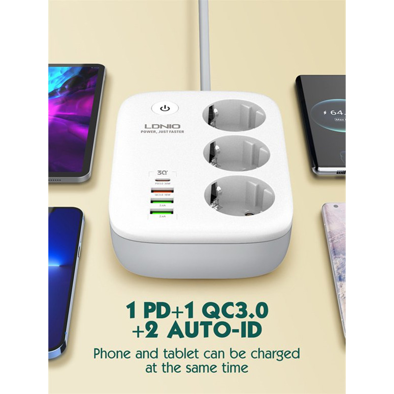 Input : 100-250V 50/60Hz 10A(Max) PD Output : 5V|3A, 9V|3A,12V|2.5A,15V|2A,20V|1.5A 30W (Max) QC Output : 5V|3A, 9V|2A,12V|1.5A 18W(Max)